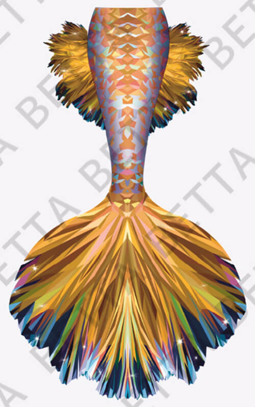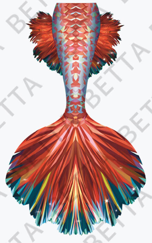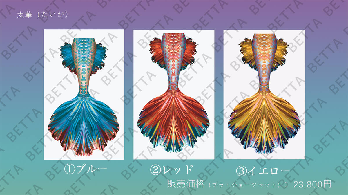 大きく円状に広がる尾ビレに心惹かれるマーメイドテイル「太華」。ブランド名通り、ベタはベタ型テイルが特に美しいですね。モザイク模様のウロコ、シャープな意匠の尾ビレのプリントが目を引きます。カラーバリエーションは3種類です✨