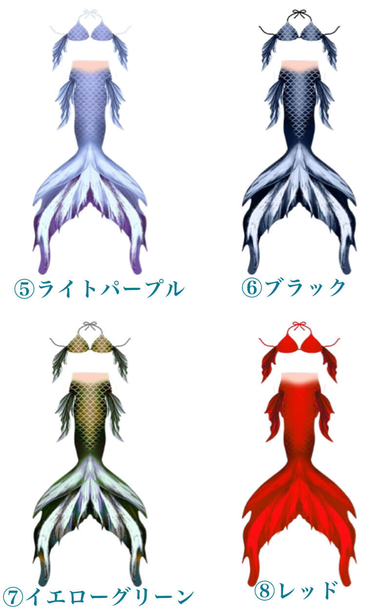 フレンツェル(Frenzel Karst Mermaid)のマーメイドテイルのオーガンジーの色は17種類からお選びいただけます。オーガンジー生地は光の当たり方でかなり色が変わるため、サンプル写真はあくまでおおよその色の目安としてご参考にしてください。